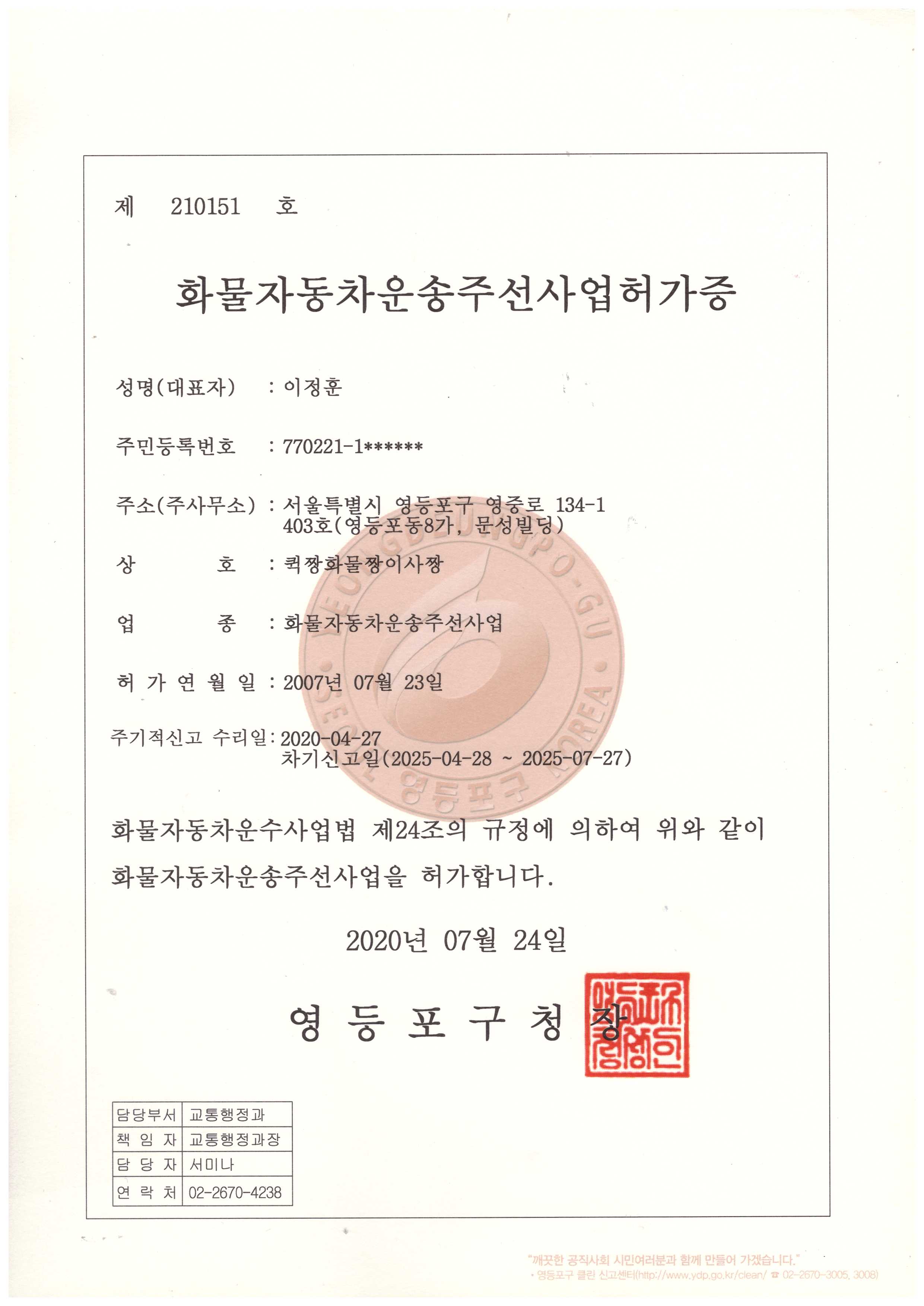 화물운송주선사업허가증